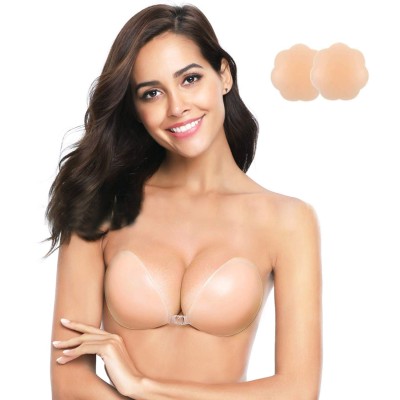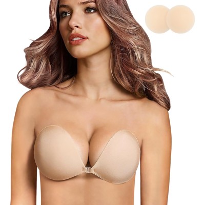 QueenSecret Adhesive Bra, Push up Strapless Self Adhesive Bra, Invisible Silicone Bra Sticky Bra for Strapless Backless Dress